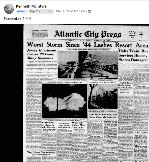 Above Image: Northeast Storm Causes Flooding, Damage and Deaths Along New Jersey Shore in 1950.