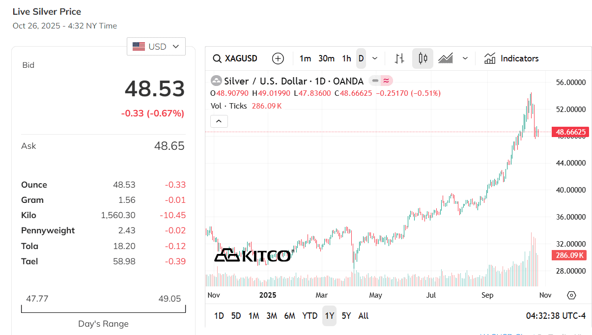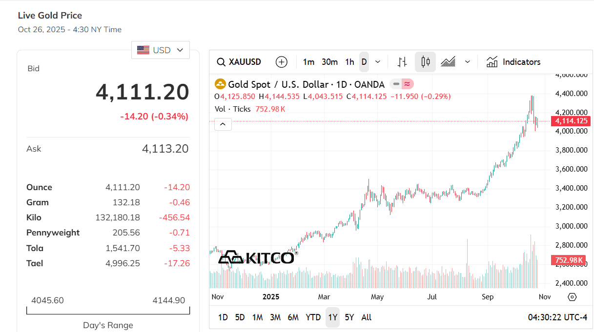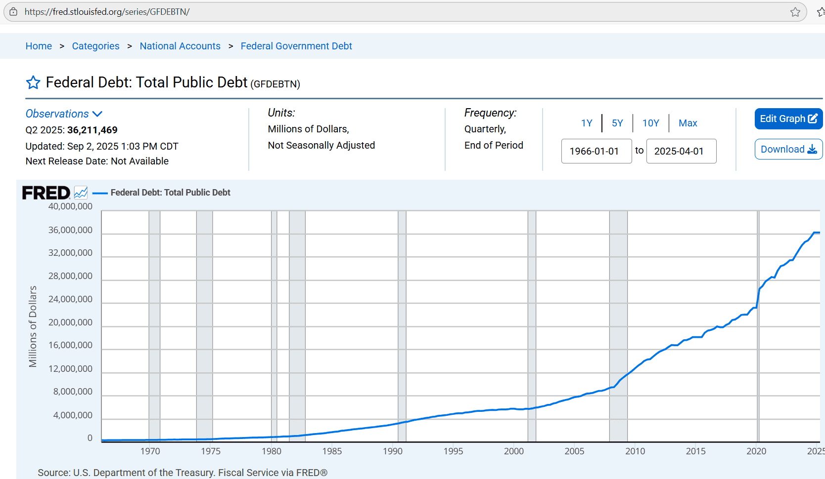 That’s 38 thousand billion dollars. Gold is now $4,100 an ounce. Silver is $48 an ounce. So gold is up $1,300 or since last year. Silver is up $14 or 29% since last year.