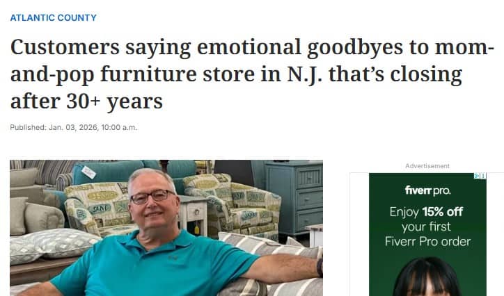 SETH GROSSMAN: Big Wally’s Furniture Store going out of business in Somers Point. To me, this is more than just a business issue. I think this is part of a bigger political and social issue. We have countless small businesses. And, obviously, the people who run the businesses get old, they retire.