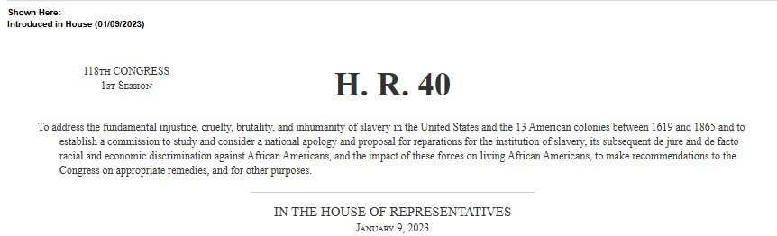 *Source H.R. 40: Commission to Study and Develop Reparation Proposals for African Americans Act. 118th Congress. Congress.gov.