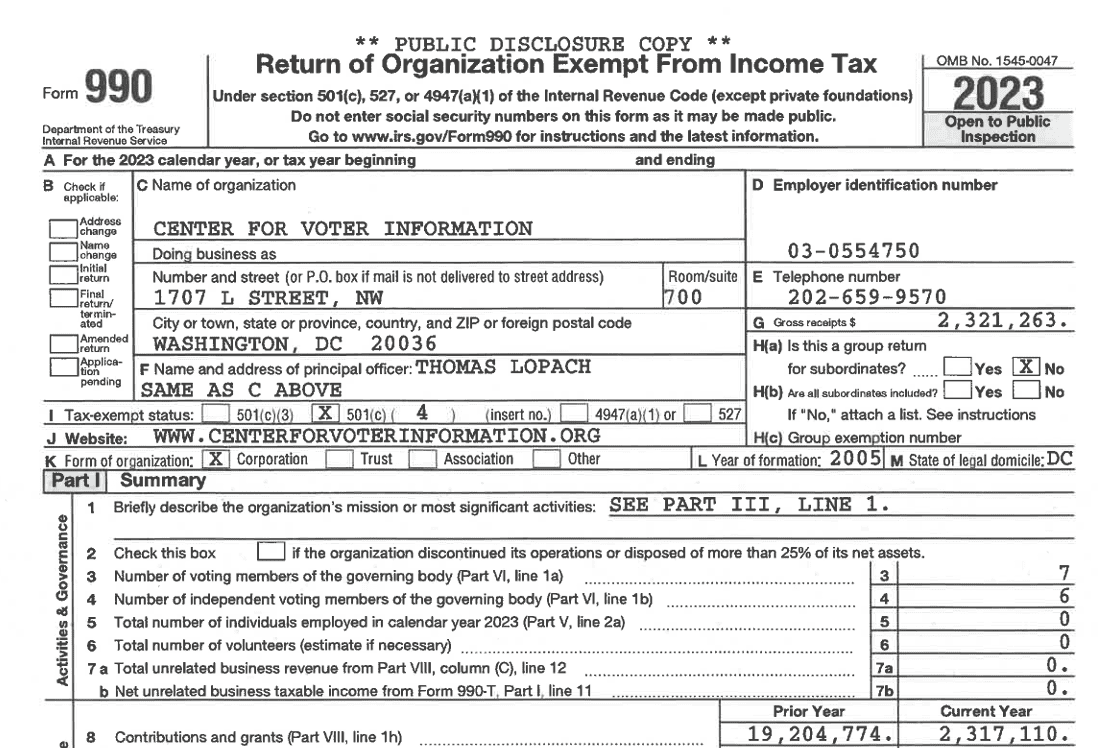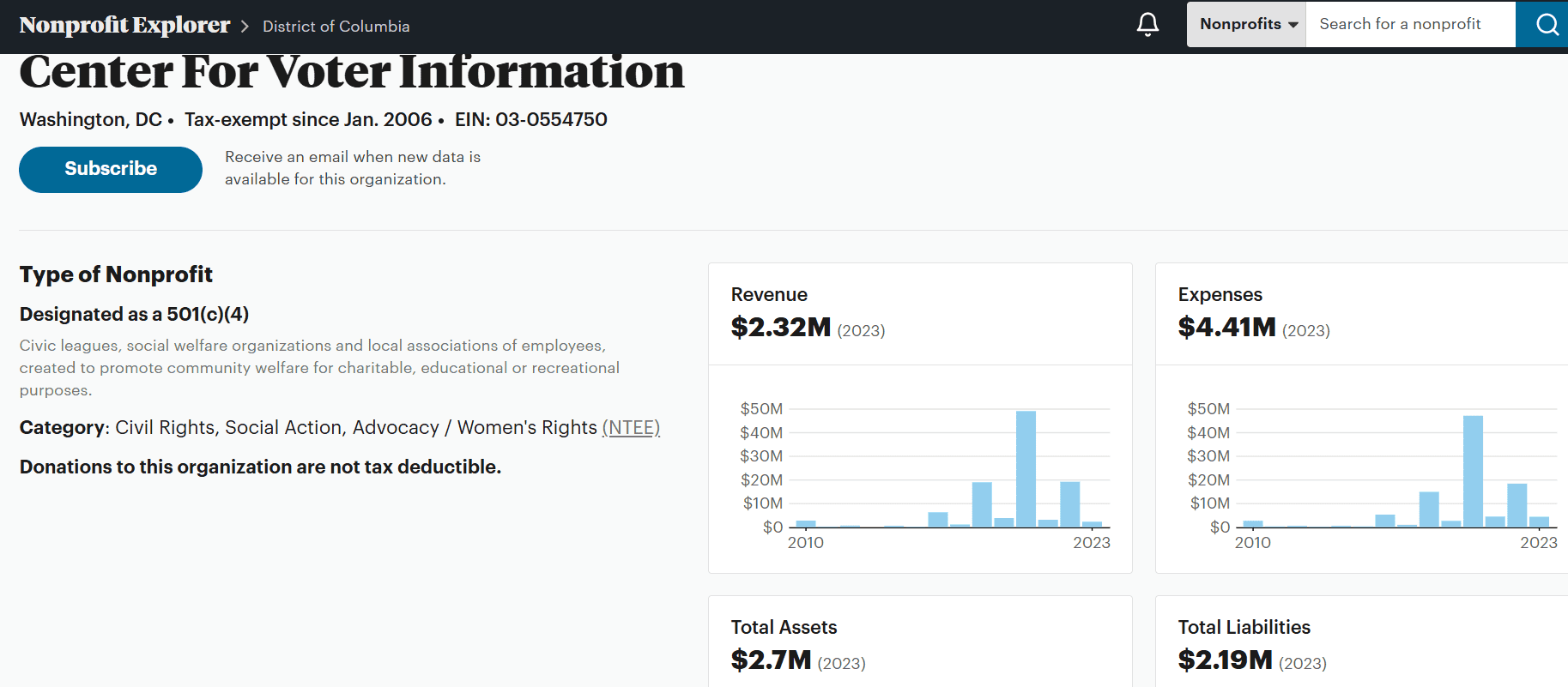The real address of the “Center for Voter Information” is in Washington, D.C.!