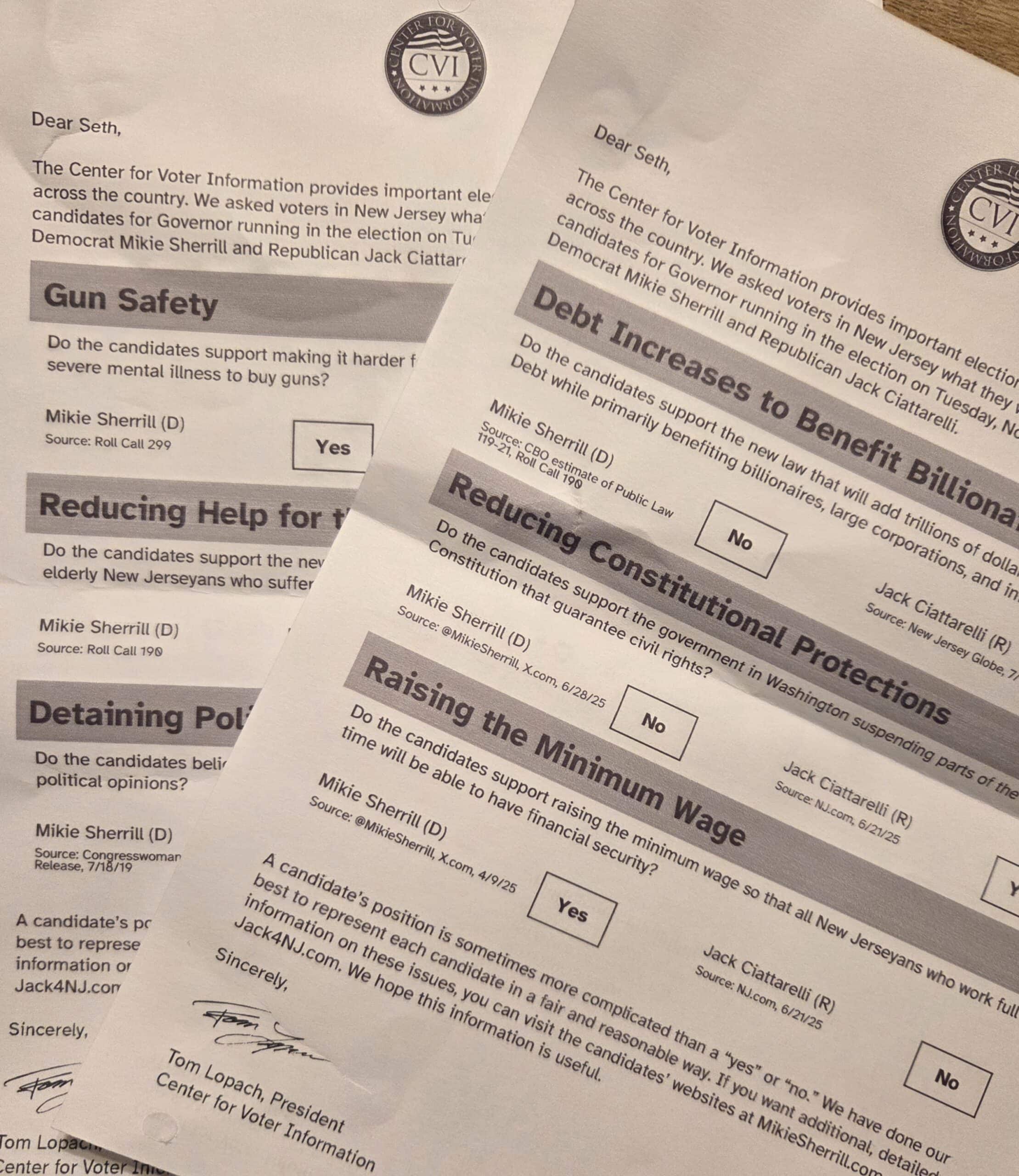 Each “report” claims to be from an impartial research organization in New Jersey. Each report claims to state how the two candidates for New Jersey Governor stand answered three questions. However, those Questions are fake. They are misleading and were never asked. They “Answers” are also fake. They are lies designed to make Democrat Mikie Sherrill appear reasonable, and Republican Jack Ciattarelli unreasonable.