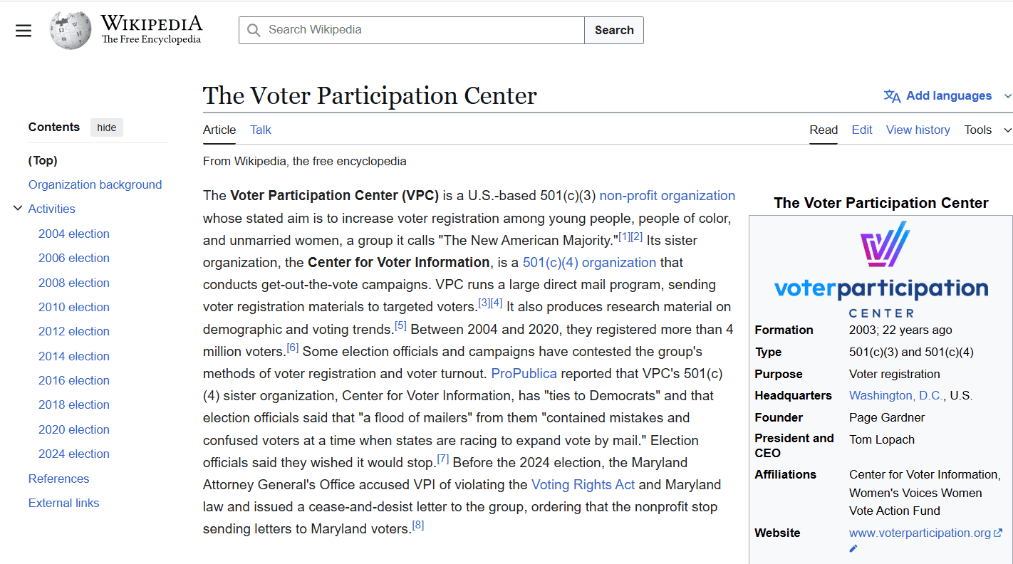 Click Here or Above Image for Link to Full Wikipedia Post: The Voter Participation Center – Wikipedia
