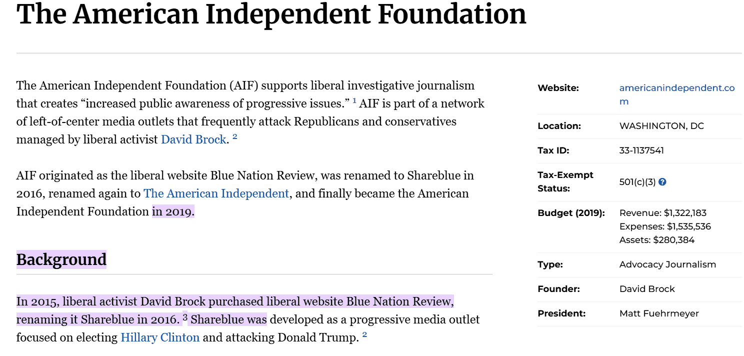 In the past it was funded by the far-left “American Bridge 21st Century Foundation”. Today, Wikipedia reports that “The American Independent does not disclose its donors.”