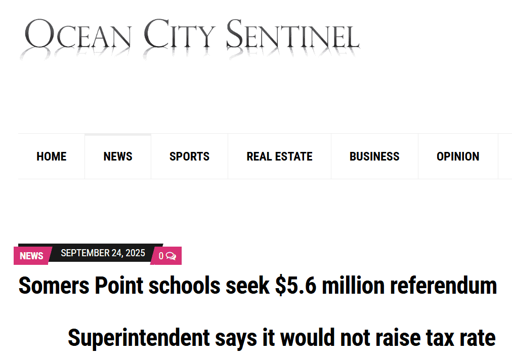 Click Here For Link To Original Post by Ocean City Sentinel on September 24, 2025: Somers Point schools seek $5.6 million referendum ‣ Ocean City Sentinel
